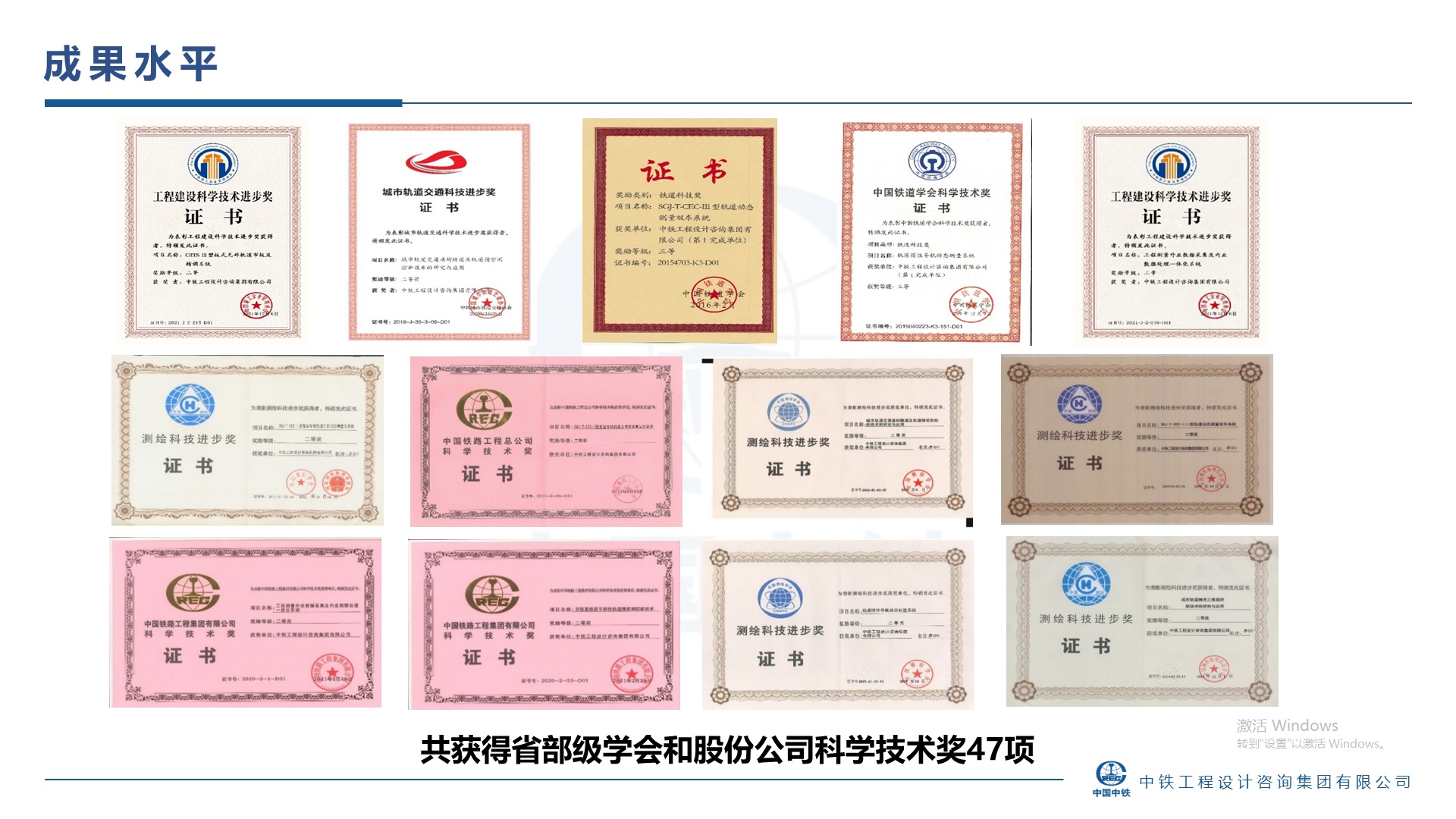 【科研開發】擁有“北京市優秀青年創新工作室”及“智慧測繪”中鐵設計職工創新工作室,研發軟硬件產品主要有:客運專線軌道幾何狀態測量儀、軌道慣性導航動態測量系統、車載移動式三維激光掃描系統、板式無砟軌道布板及精調系統、高速鐵路軌道控制網數據采集與處理系統、高速鐵路沉降變形觀測數據處理與分析預測系統、基于物聯網與云計算的智能監測系統、工程測量外業數據采集及內業數據處理一體化系統等。