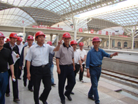 鐵道部副部長胡亞東、盧春房視察建設(shè)中的青島站 |