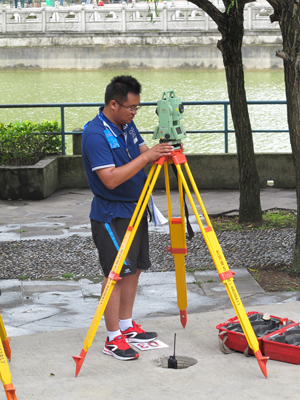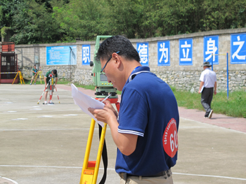 本次比賽由團委書記趙廷儉擔(dān)任領(lǐng)隊,航遙院吳國盼出任裁判,航遙院郭洪利和胡慶豐、濟南院王元陸、太原院黃原春四名選手參加。在三天的比賽期間,選手們在酷熱的天氣里,與來自股份公司系統(tǒng)的22家單位共88名選手同場競技。每名選手在隊友的配合下完成高程控制測量、平面控制測量和道路放樣三個項目,并統(tǒng)一參加了測量基礎(chǔ)理論知識的考試。