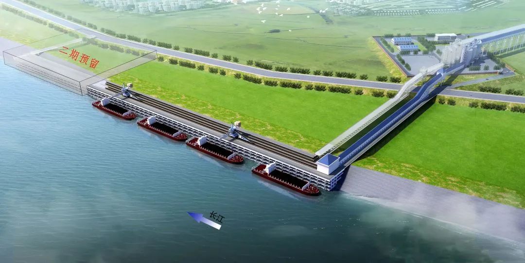 ▲華容煤炭鐵水聯(lián)運(yùn)儲配基地碼頭一期工程效果圖