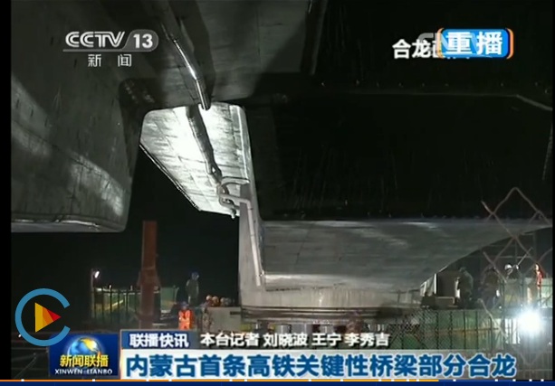 5月18日凌晨1點50分,由中鐵工程設計咨詢集團有限公司設計的內蒙古首條高速鐵路張呼鐵路蒙古營印河特大橋40+56+40m連續梁38、39號墩梁轉體合龍圓滿成功,整個轉體過程用時37分鐘,大橋成功跨越集包二線。中央電視臺、新華社、內蒙古電視臺對施工全程進行了現場跟蹤報道。