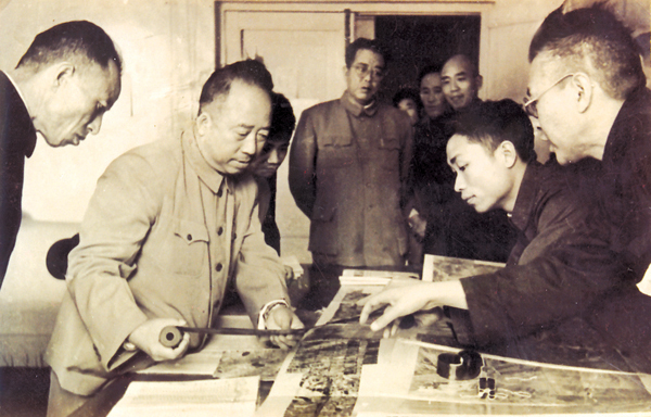 首任鐵道部部長滕代遠、副部長武竟天視察鐵路航測工作(1957年9月27日)