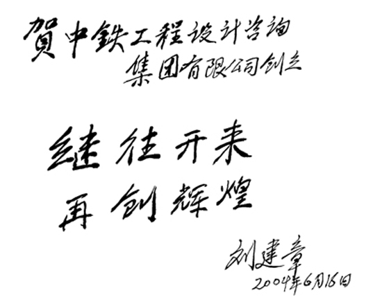 原鐵道部部長劉建章題詞(賀中鐵工程設(shè)計咨詢集團有限公司成立)