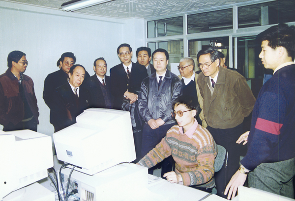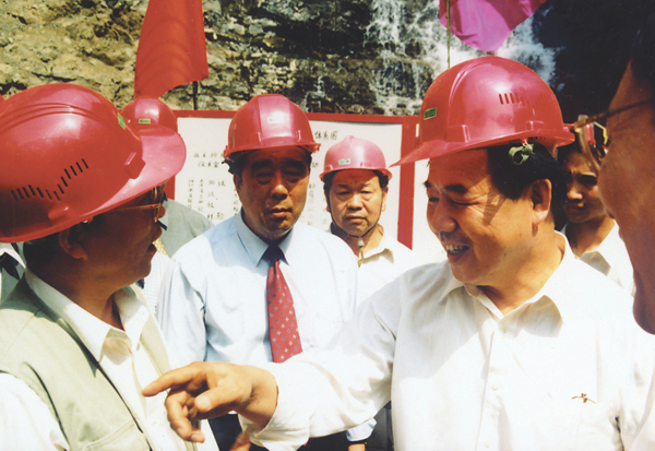 原鐵道部部長傅志寰視察內(nèi)昆鐵路時同公司監(jiān)理人員親切交談