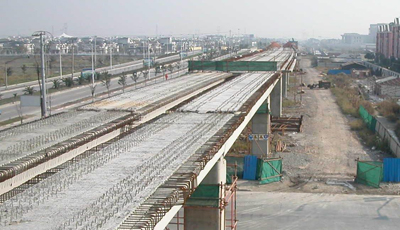 重慶較新線全長18公里,起自商業中心較場口,西至鋼鐵基地新山村,全長18公里;一期工程14.35公里,時速可達80公里,該工程總投資35.5億元人民幣。該工程已于2004年11月全線建成通車,我公司承擔了全線PC梁設計和工法編制工作。