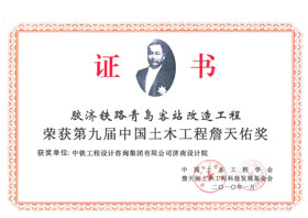 青島火車站QC攻關小組,共獲得國家級獎2項,省部級獎3項;獲得國家級優(yōu)秀咨詢成果二等獎,國家級優(yōu)秀設計二等獎,鐵道部優(yōu)秀設計一等獎,第九屆中國土木工程詹天佑獎。